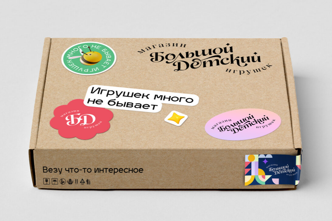 В логотипе мы хотели отразить дух эпохи стремительных открытий, грандиозных цирковых шоу, многовековых традиций и незабываемый опыт от посещения магазина Большой детский.